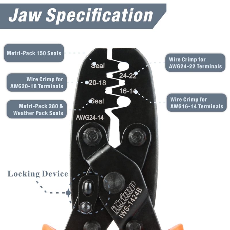 iCrimp Weather Pack Sealed Connector Crimping Tool - Wire Crimper for Delphi Metri-Pack 150, 280 & Weather-Pack Terminals AWG24-14