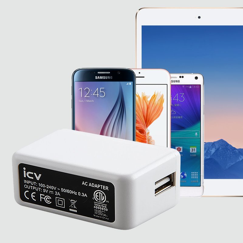 icv USB Wall Charger – 5V 2A 10W AC Power Adapter with US Plug for Phone, Tablet and Other Related USB Powered Devices Small and Lightweight – Designed for Safety(White)