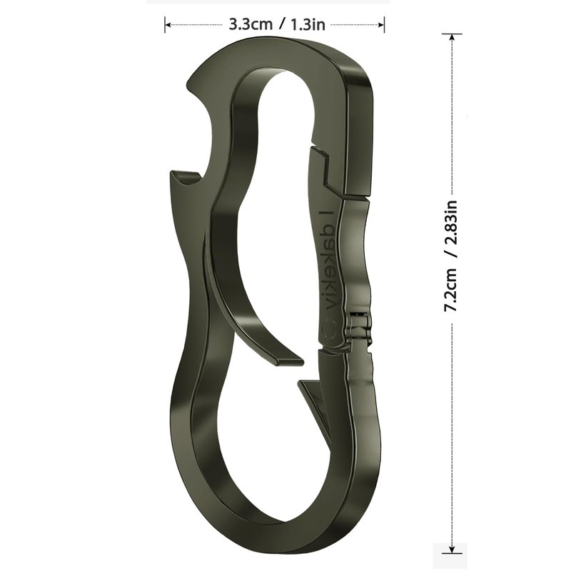 Multi-functional Upgrade Full Zinc Alloy Key Chain Our key chain is an everyday work item as you require multiple keys during the day and over the years have tore up multiple belt loops from regular clips. The smoothed gate clip on this product is a clothing saver and the bottle opener is a extra for after work. It also provides a slight advantage by allowing for a key ring to slip down to it’s smartly designed “pocket”. Extremely Lightweight One of the lightest hardness keychain (Size: 2.83x1.35x0.17 in, 0.9 oz). This key chain make of full zinc alloy has built in prevents accidentally losing keys.
