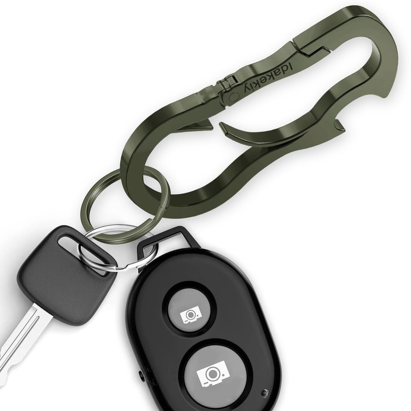 Idakekiy Dual Carabiner Keychain Mutil Tool with Key Chain Bottle Opener for Keys Dark Grey Pack of 2