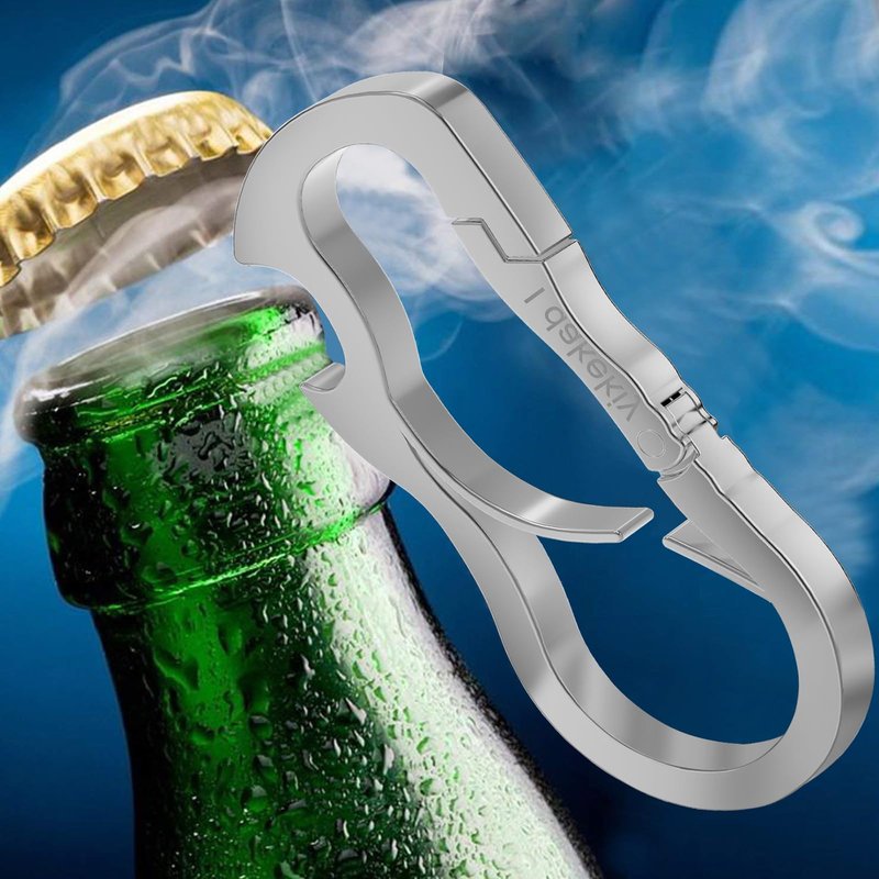 Idakekiy Dual Carabiner Keychain Mutil Tool with Key Chain Bottle Opener for Keys Silver