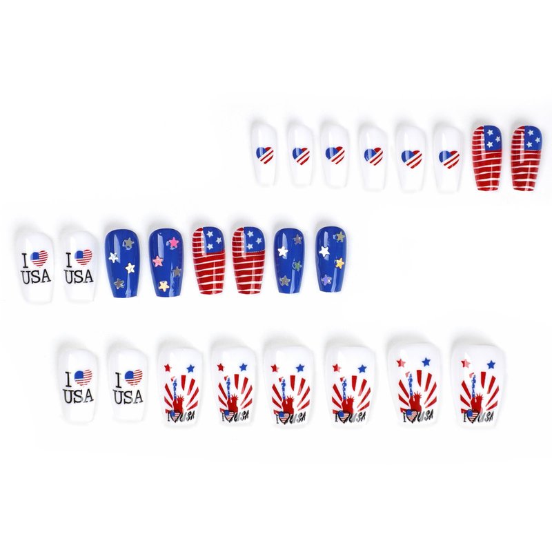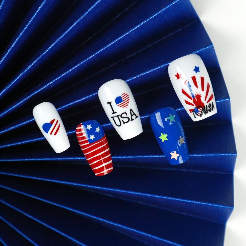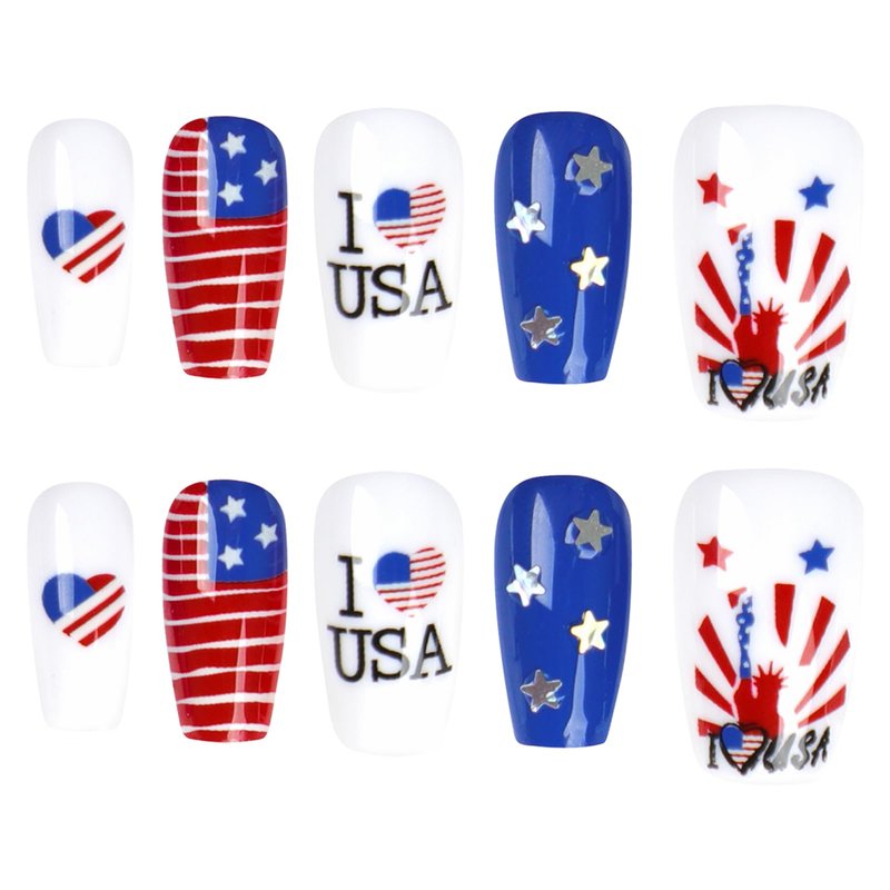 4th of July Press on Nails Red Blue Independence Day False Nails Designs Artificial Fingernails.