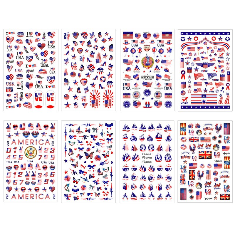 - 4th of July Design - You will get 8 sheets Independence Day nail art stickers. These stickers are fun and unique, USA Flag, map, star, heart, and other patterns that are representative of 4th of July are available.