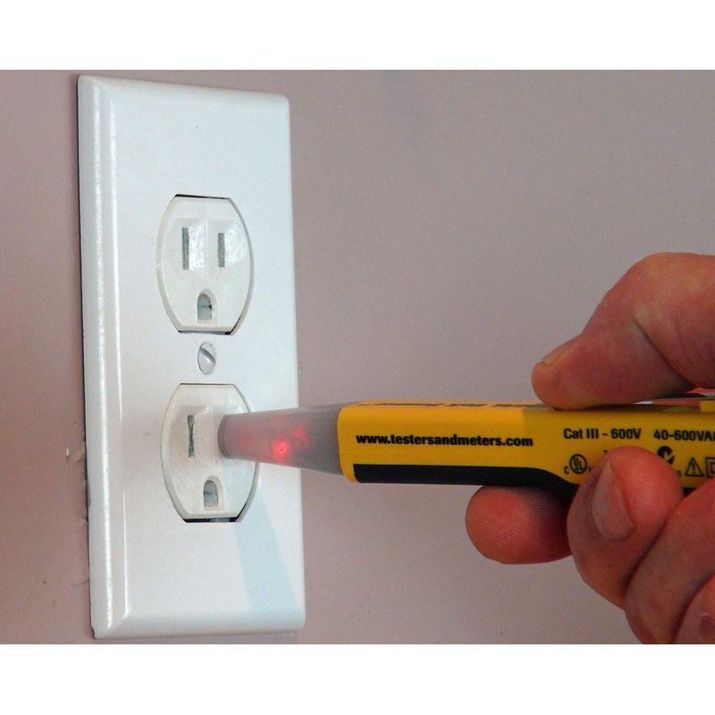 - EASY AND ACCURATE VOLTAGE TESTING: Detect 40-600 VAC with respect to ground by grasping the instrument in your hand, depressing the clip and placing the tip near a live wire. Locates breaks along live insulated wires and tests for energized circuits.