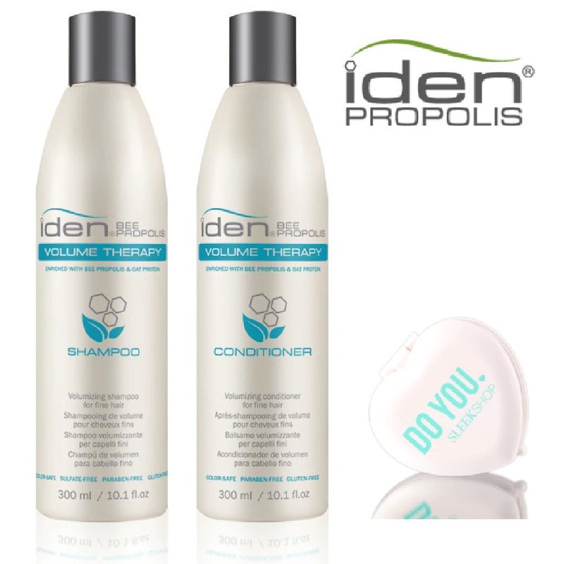 Iden Bee Propolis VOLUME THERAPY Shampoo & Conditioner DUO Set (with Sleek Compact Mirror) (10.1 oz / 300 ml - DUO Kit)