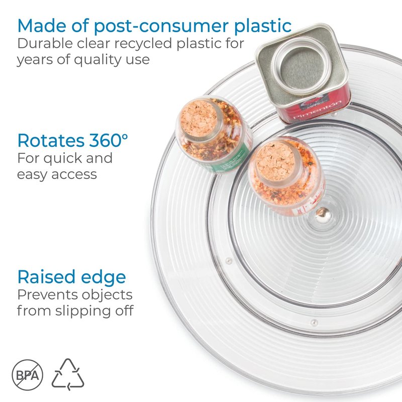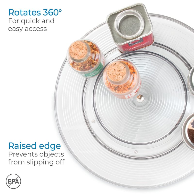 - VISIBLE & ACCESSIBLE: Products are easy to see and reach – clear tray measures 11.5" diameter x 2".