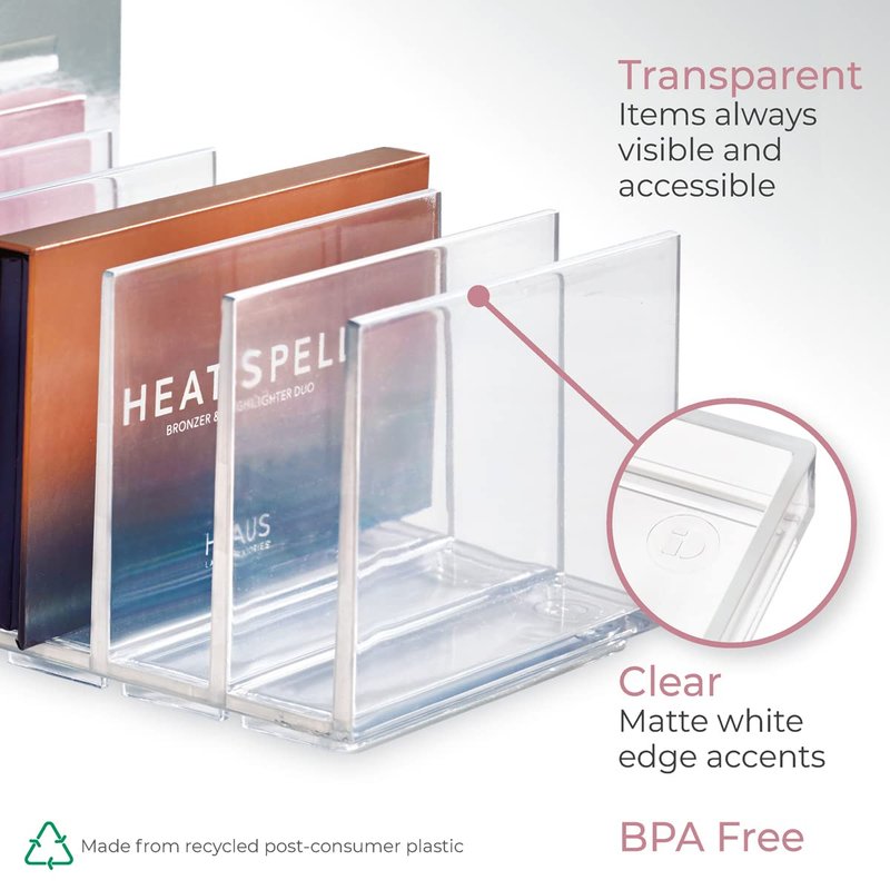 - VERSATILE STORAGE – Raised transparent dividers ensure that your most-loved makeup palettes stay upright and are always visible and accessible for easy makeup storage in any space.