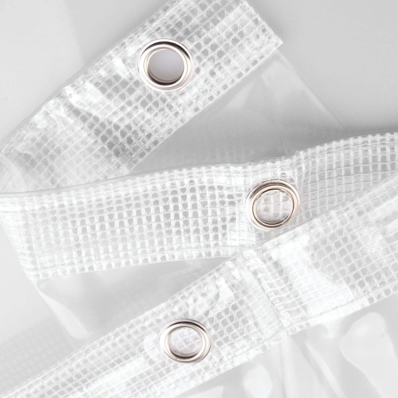 - DURABLE AND STABLE - Clear shower curtain features reinforced grommets for S hooks, shower rings and other shower curtain hooks for easy hanging; bottom magnets provide weight and stability to ensure the weighted shower curtain liner stays in place