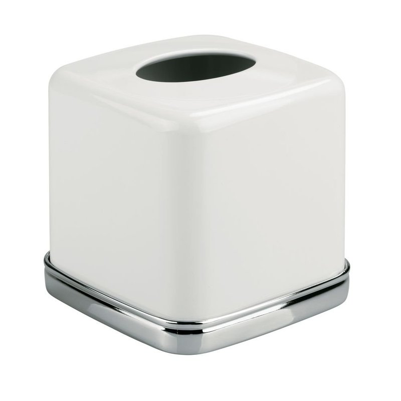 iDesign York Facial Tissue Box Cover for Bathroom and Vanity Countertops, 5.75" x 5.75" x 5.5", Chrome and White