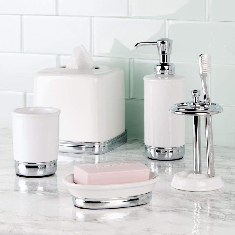 - STYLISH AND DURABLE – The classic white and chrome gold tissue box cover matches a variety of bathroom decors and styles; Square tissue box has a sturdy, non-skid base to prevent sliding on wet countertops