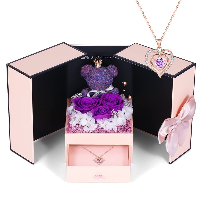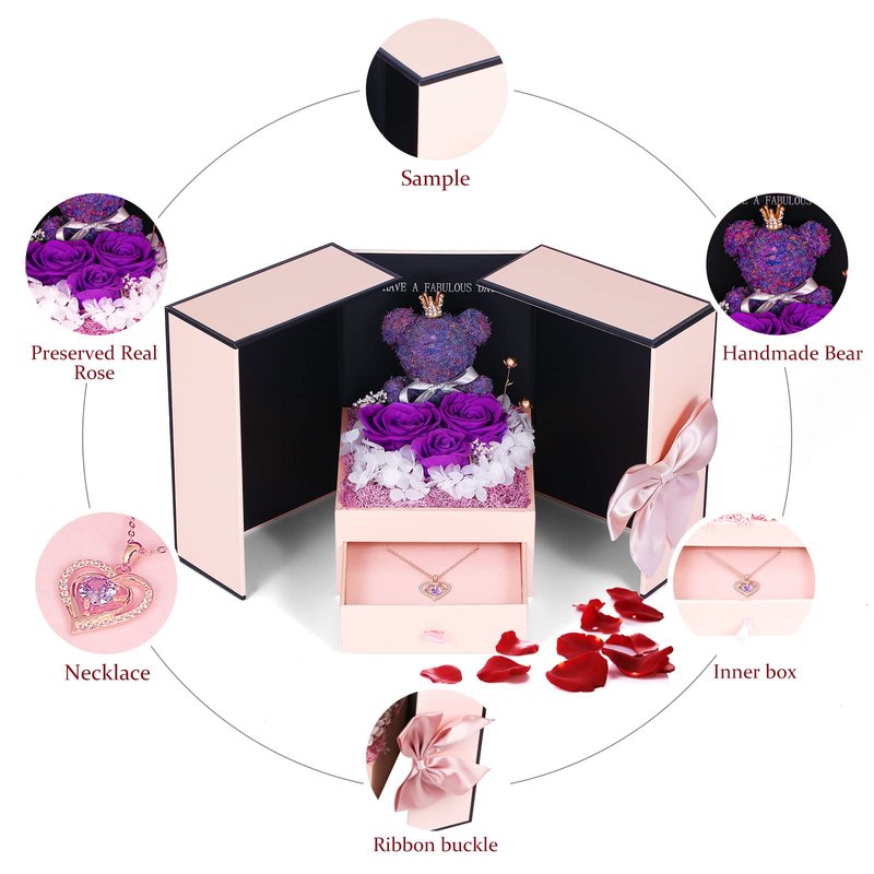 - 【Preserved rose】The preserved flower and moss bear that never withers means eternal love of her, wife, girlfriend and women. It is the best meaning for husband and boyfriend to send their soulmate.