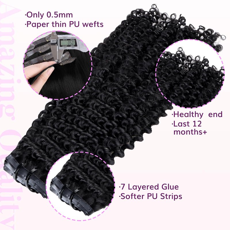 - Ultra-Thin and Flexible PU Weft. Featuring an ultra-thin and flexible PU weft, seamless hair extensions clip in are soft, comfortable, and gentle on your scalp. The 0.5mm outer glue width makes them more skin-friendly. Meanwhile, seamless clip ins will make your hair naturally fluffy and virtually undetectable when worn.