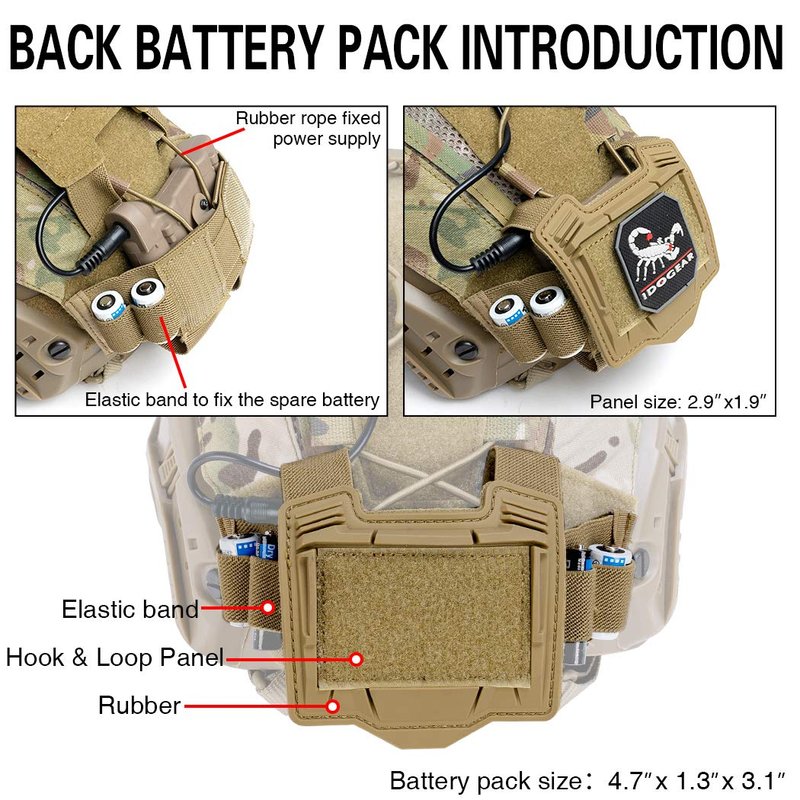 - AFTER-SALE WARRANTY: Package included: IDOGEAR helmet cover with battery pouch*1.The helmet is NOT included; Order now and if you dislike, we offer 90 days money back warranty. 100% RISK FREE!