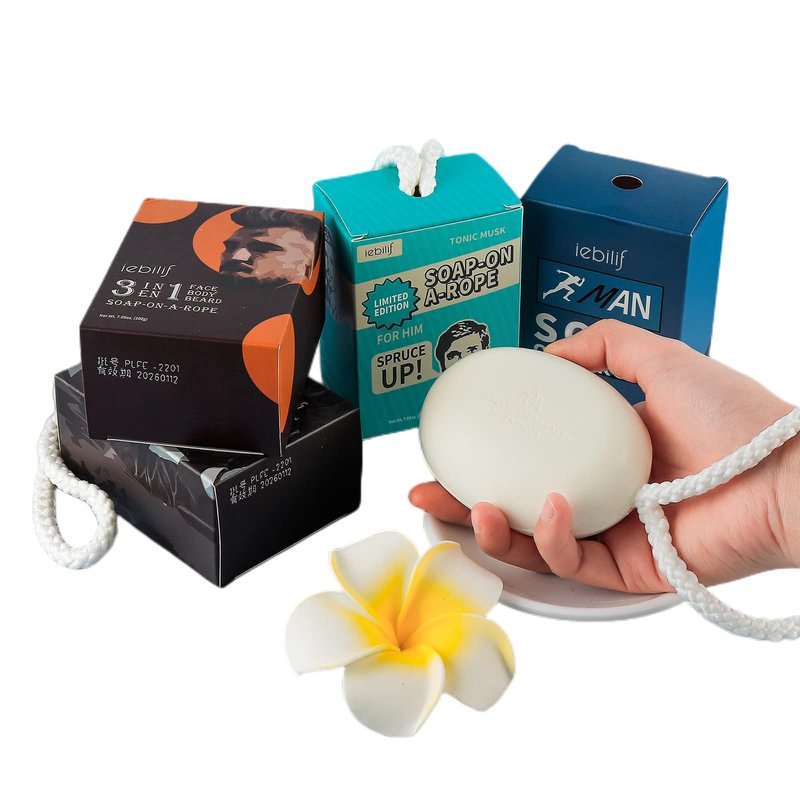 IeBilif Men Bar Soap On a Rope Pack of 4 Bath Soap for Face Body Natural Hydrating Soap Bar for Men and Women,7.02 Ounce each
