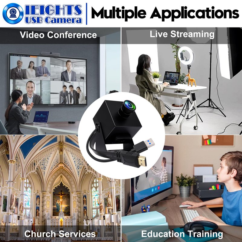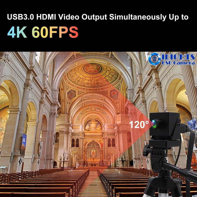 IEights 4K 60fps HDMI Webcam USB3.0 Camera Dual Output Wide Angle 120degree Low Distortion Lightburn_Camera 2X Digital Zoom Webcamera H.264 High Speed USB Security Cameras for Computer TV Monitor