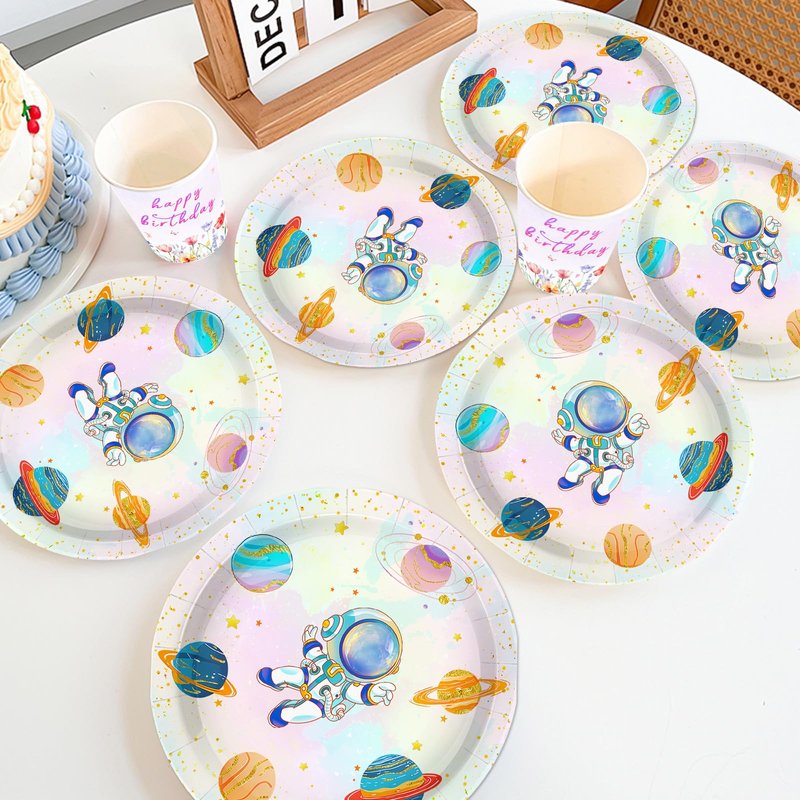 - Safe and Stylish:Our space theme party decorations are crafted using safe materials,ensuring both practicality and aesthetics for all occasion. Decorate the tableware with our outer space birthday decorations for an unforgettable guest experience