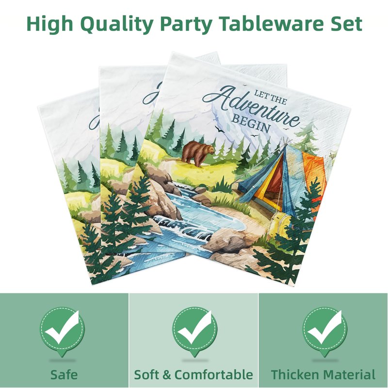 This nature party decorations includes 24 papaer plates (9 inches), 24 plates (7 inches), 24 napkins (13 inches), and 24 forks (6.5 inches). With these travel theme party supplies, you can effortlessly host a fiesta party! Get ready to level up your celebration with our exciting outdoor baby shower decorations for party!