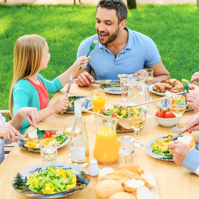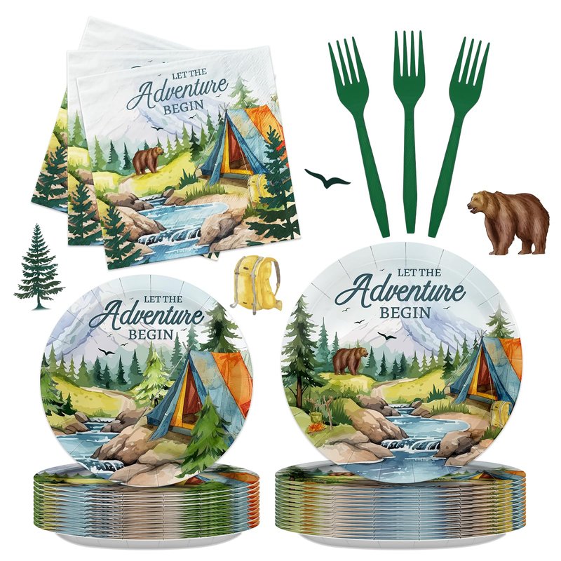 - Adventure Party Decorations:Elevate your party celebration with our travel themed party decorations package for 24 guests.This set includes 24 let the adventure begin dinner plates (9 in),24 dessert plates (7 in),24 napkins (6.5 in),and 24 forks (6.5 in)
