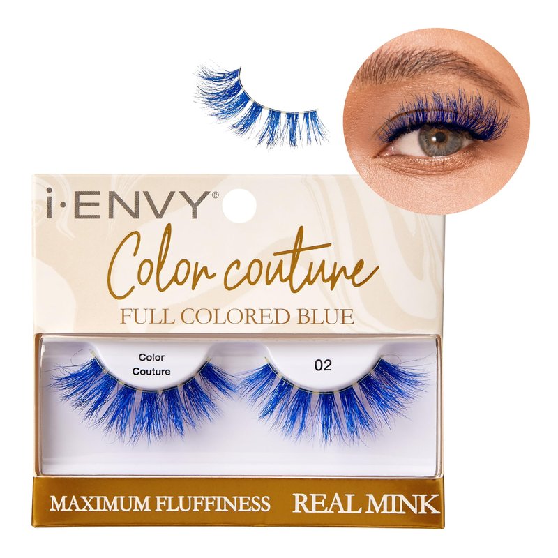 iENVY False Eyelashes Real Mink Color Couture Full Colored Lashes Maximum Fluffiness and Volume Fake Eyelashes (Blue)