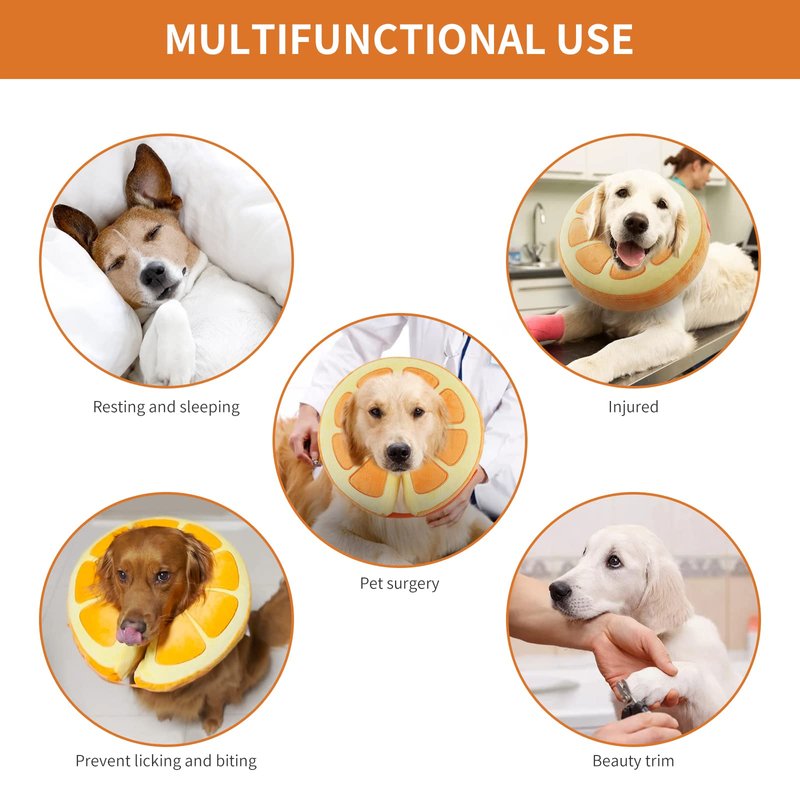 Our donut collar for dogs after surgery are very lightweight and can be easily folded to save space when deflated. The bright colors and orange design make this inflatable dog cone even more adorable. Therefore, you can easily carry them on any occasion.