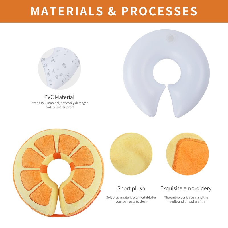 - 【Cute Embroidery Design】 More than just a dog donut collar, it's a lovely decoration for your lovely cats. Exquisite embroidery makes this inflatable dog collar cuter and more textured. Imagine your cat wearing it and looking like an orange. When sleepy, your little cute cat sleeps on an orange. You will be in a good mood all day when you see this.