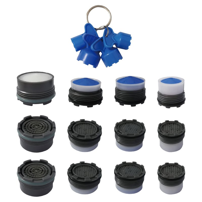 - 【16 Pack】- 12pieces faucet cache aerator of Male 16.5mm/ 18.5mm/21.5mm/24mm,meet your different sizes needs. The handy key ring keeps them together and includes 4 size cache aerator key,In case of loss and provide convenience for your storage