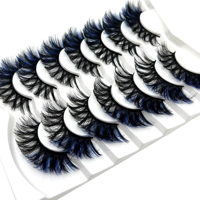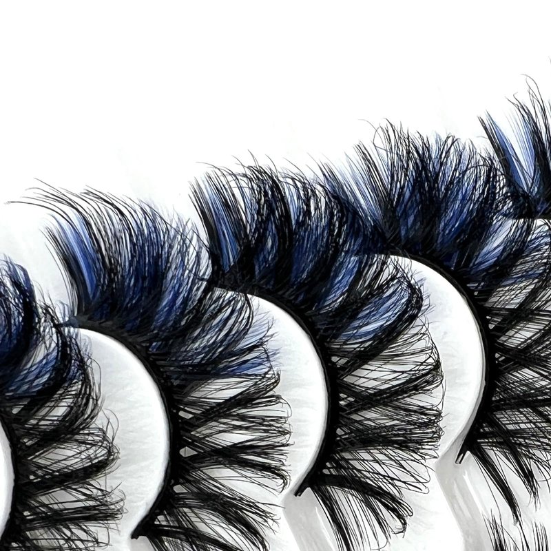 IFSOWDRA Colored Lashes Mink Wispy C/D Curl 3D Mink Strip Lashes Blue Color Lashes Natural Look Dramatic Long 20mm/25mm Cat Eye False Lashes Pack