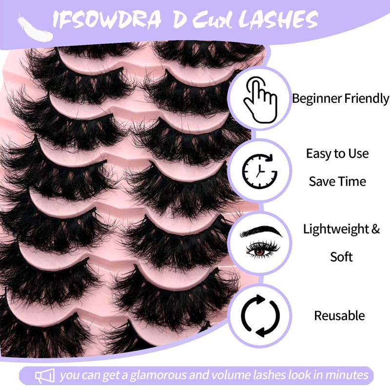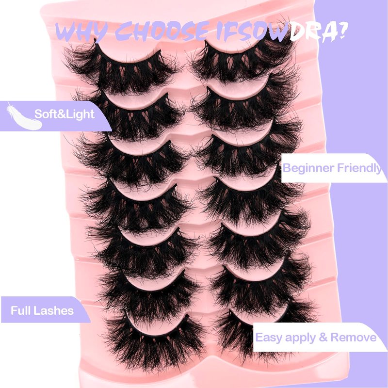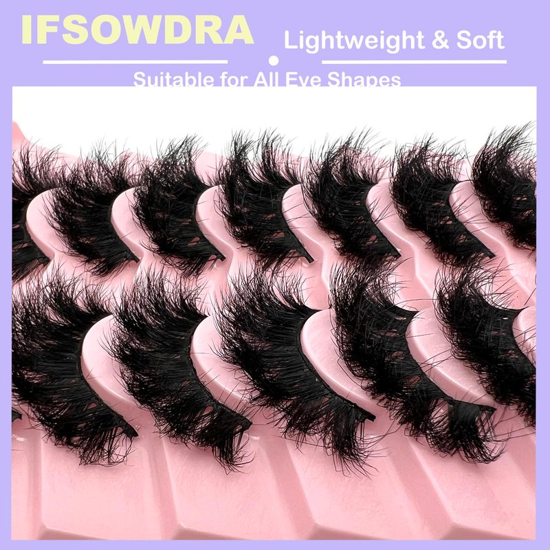 IFSOWDRA Dramatic Lashes Mink Long 20mm/25mm Mink False Strip Lashes Wispy Flase Eyelashes Natural Look D Curl Lashes Strips 3D/5D Volume Full Lashes Pack