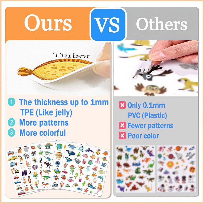 - Preschool Education Learning Toys- This jelly sticker book can develop the child's fine-motor skills, hand-eye coordination and improve concentration. Can help kids learn words and recognize things easily through play.