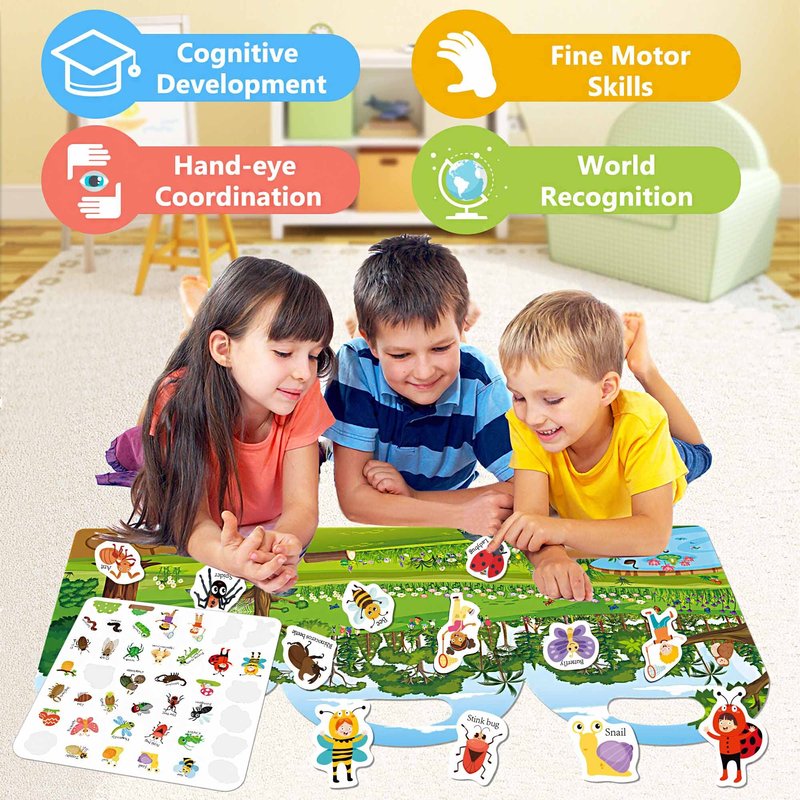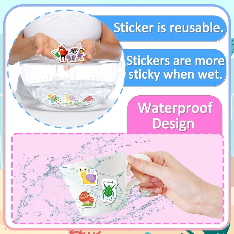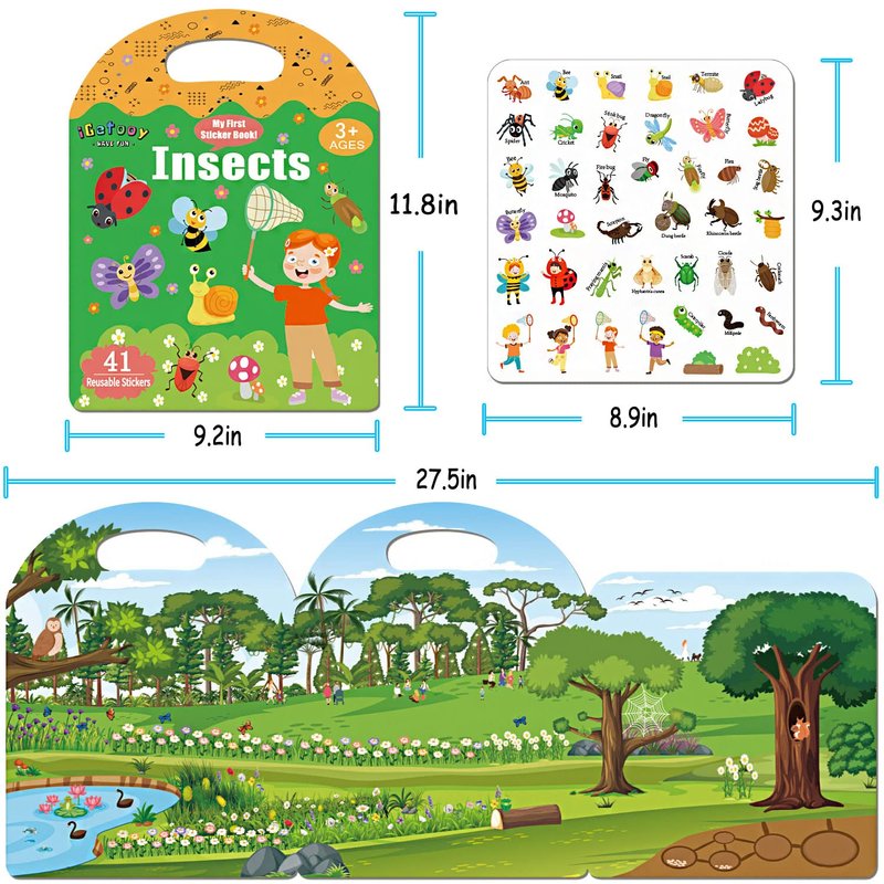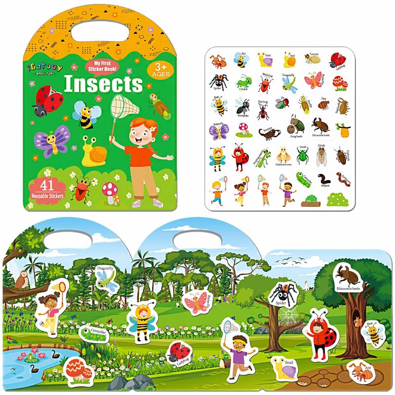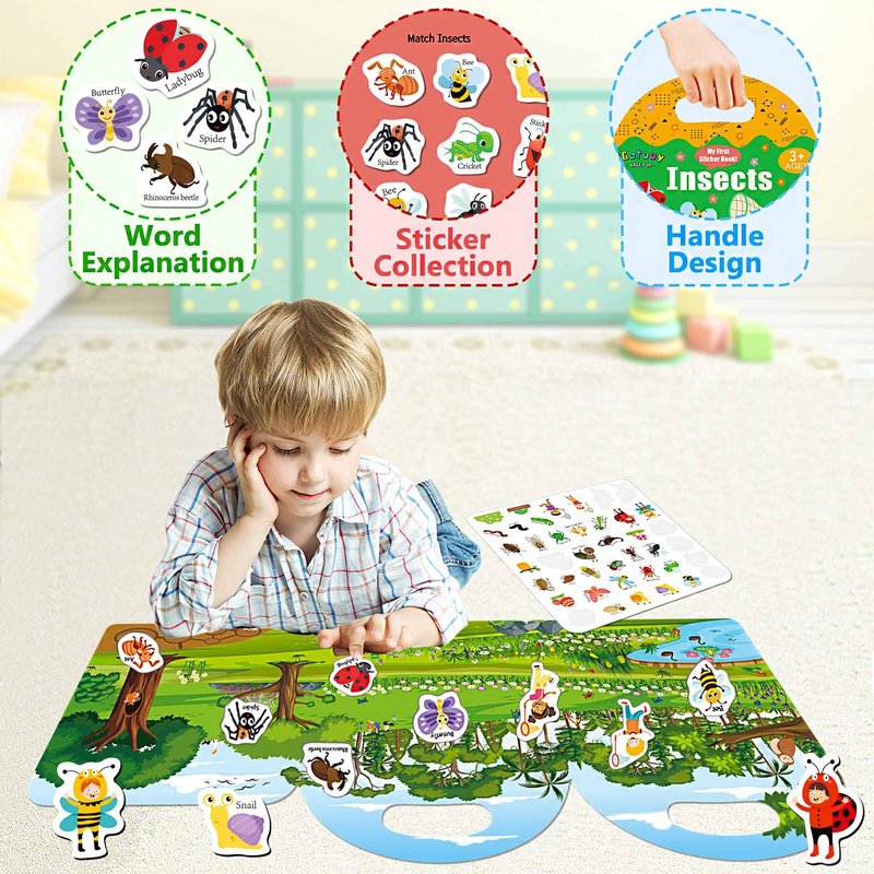 iGetooy Reusable Sticker Books for Kids, Sticker Books for Toddlers 2-4 Years, Waterproof Stickers, Valentines Day Gifts for Kids 2 3 4 5 6 Year Old Girls Boys (Insects)