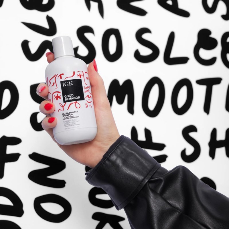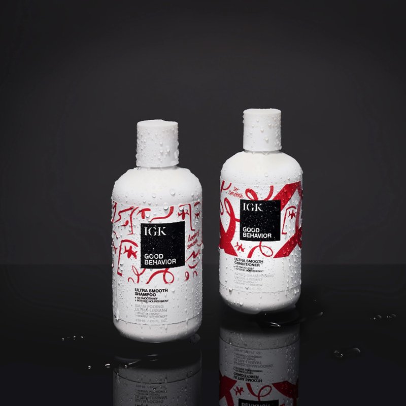 IGK GOOD BEHAVIOR Ultar Smooth Shampoo and Conditioner Set (8 Oz) + Bonus Travel Size Packettes | Volume + Thickening | Vegan + Cruelty-Free |