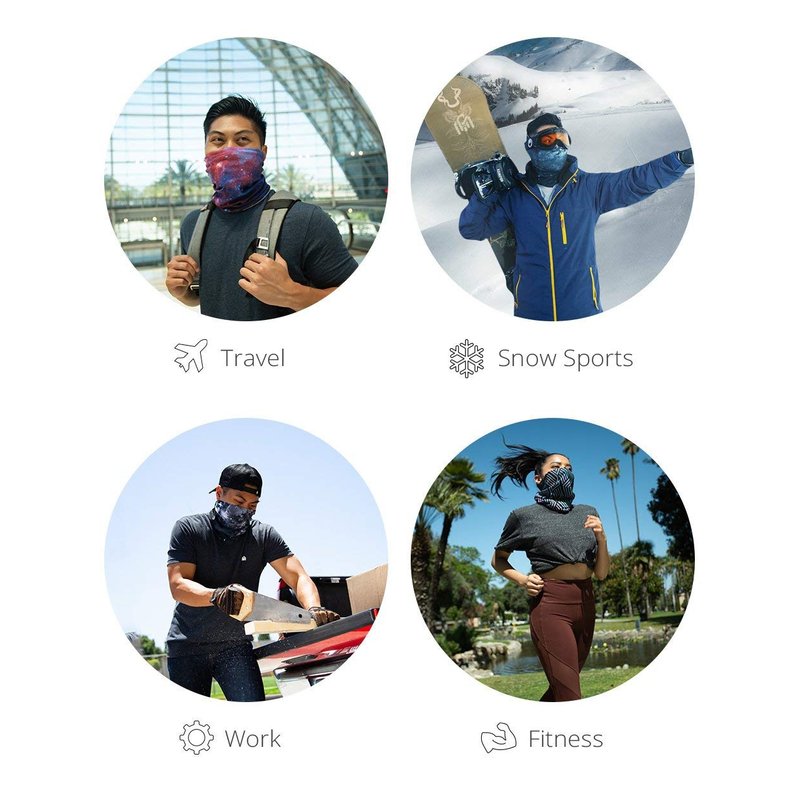 - Multi Functional Design; Over 12 ways to wear it; neck mask, face cover, neck gaiter face mask, gator mask, headband, wristband, scarf face mask, balaclava, face covering, seamless mask, fishing mask, dust mask, bandana, mouth cover, and more
