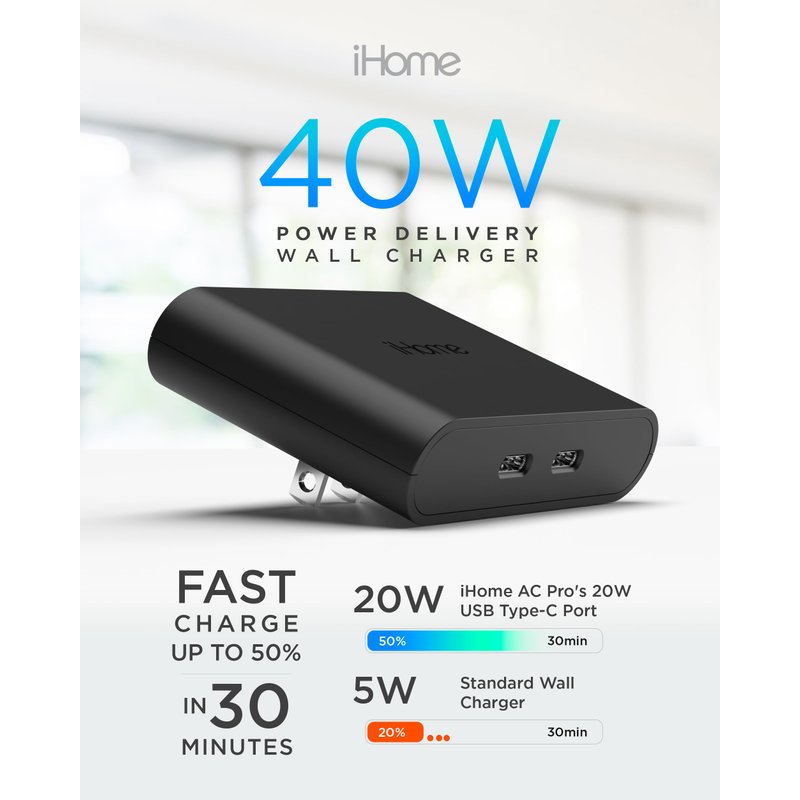 - FAST CHARGING: Fast charging is no longer a luxury, but a necessity, and this type c adapter understands this. The iHome USB-C wall plug, also known as the usb c block, offers the ability to charge your mobile device up to 2.5x faster than a standard 5W apple wall charger.