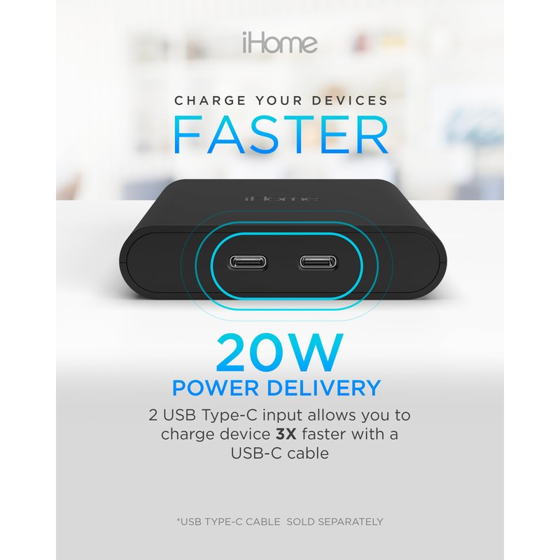 - SIMULTANEOUS CHARGING: No more waiting for one device to finish charging before starting the next, thanks to these charging blocks. The iHome Multiport 36W USB-C Charger, a fast charging block, allows simultaneous charging at power delivery speeds.