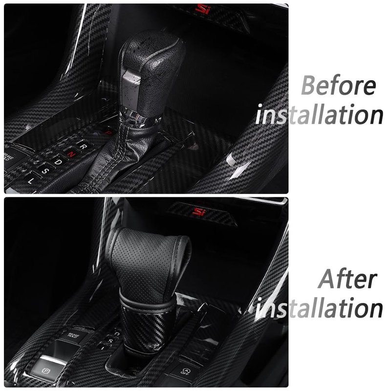 - ⭐ 【Fashionable Patchwork Design】 The gear shift cover adopts a fashionable carbon fiber pattern and leather patchwork design, adding a sense of sportiness and atmosphere to your car interior! It perfectly wraps around the car shift knob, preventing it from peeling, cracking, and aging caused by long-term touch and use.