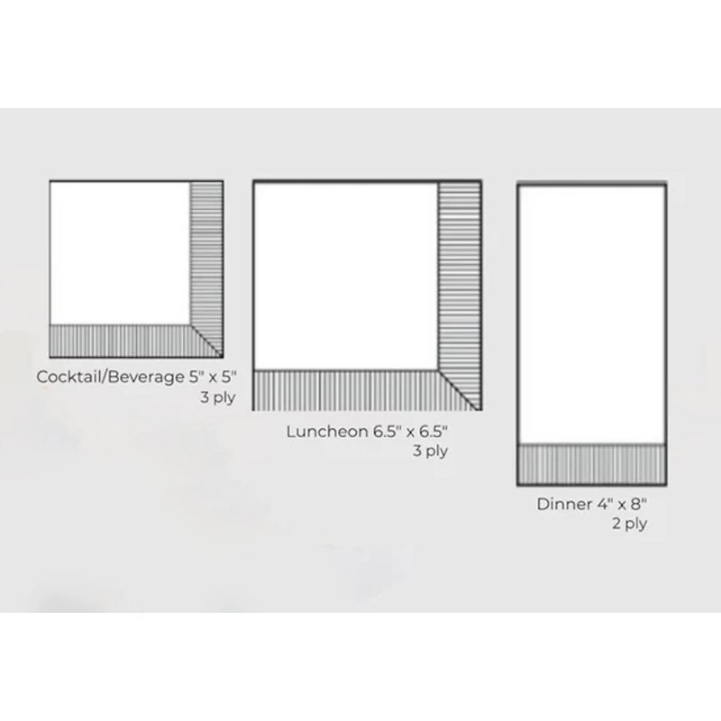 - LUNCH, DINNER, DESSERT: Napkins measure 6.5 x 6.5-inches (folded size)