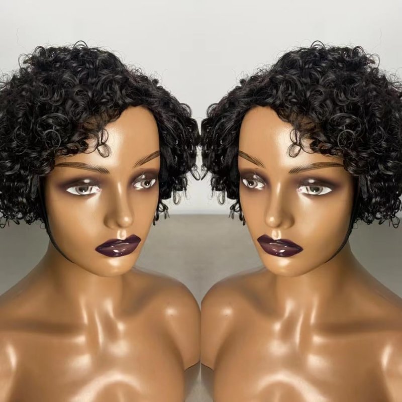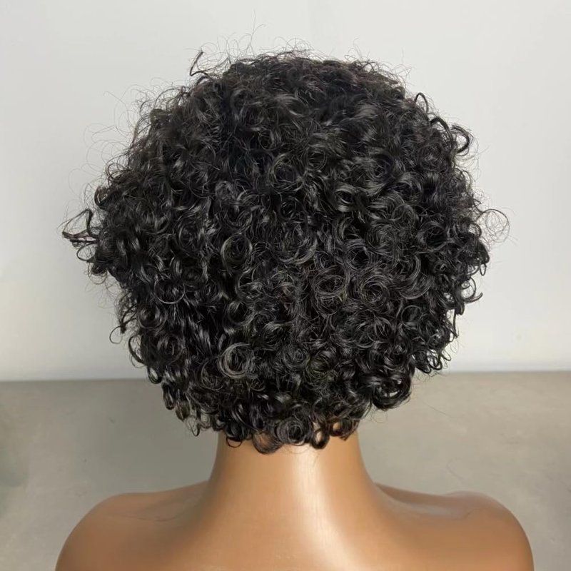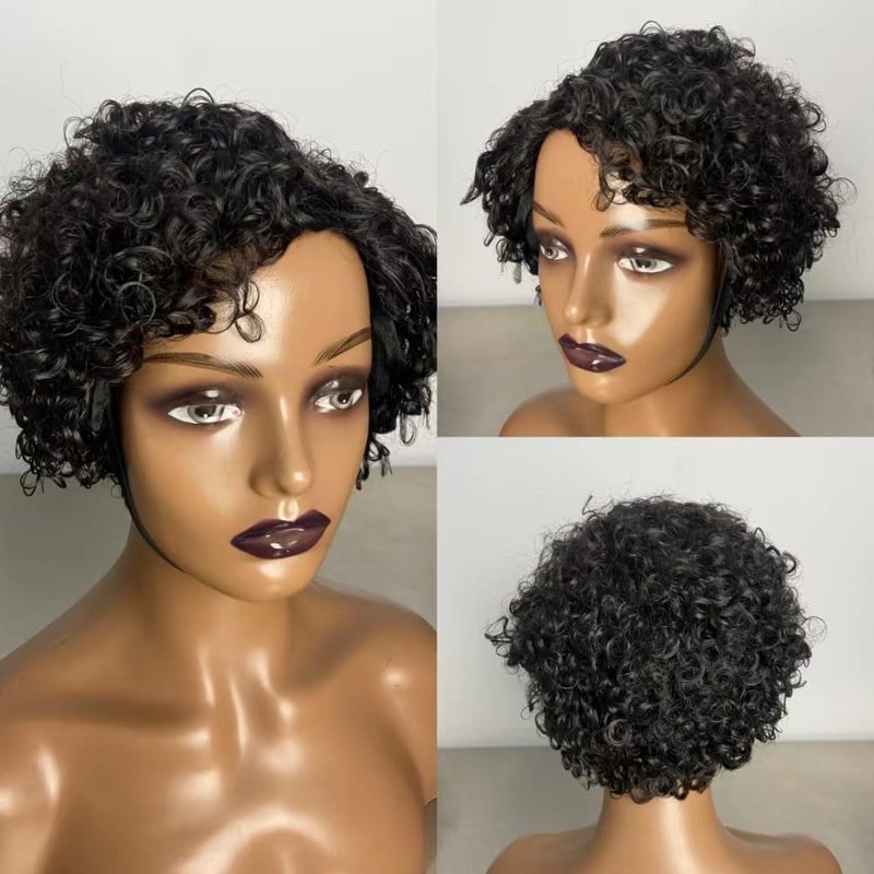 - Hair Material: 100% Short Curly Human Hair Glueless Fringe Human Hair Wig