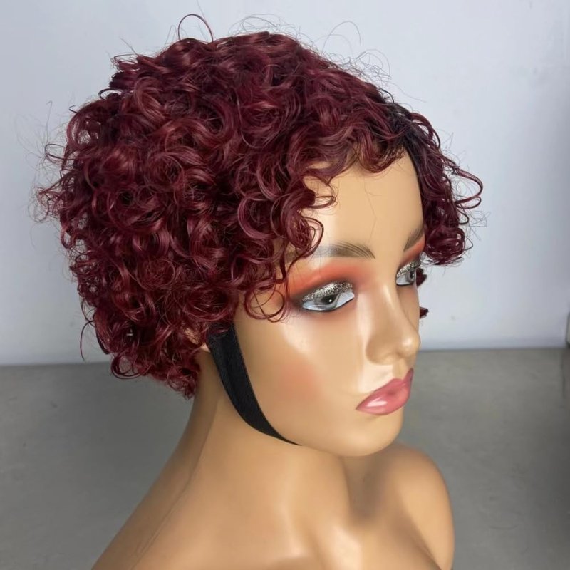 - Hair Material: 100% Short Curly Human Hair Glueless Fringe Human Hair Wig