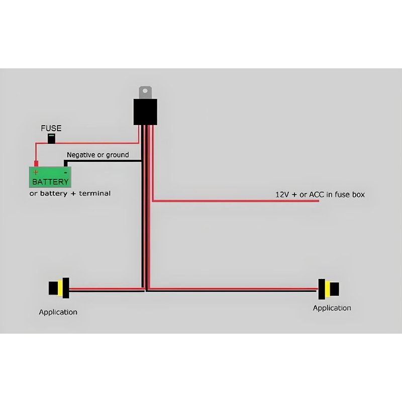 - Perfect for power management, this relay harness is ideal for applications like front fog/driving lights and off-road lightbars, pod lamps drawing power directly from the battery to prevent excessive load on the vehicle’s existing wiring system and ensuring safe, easy on/off operation