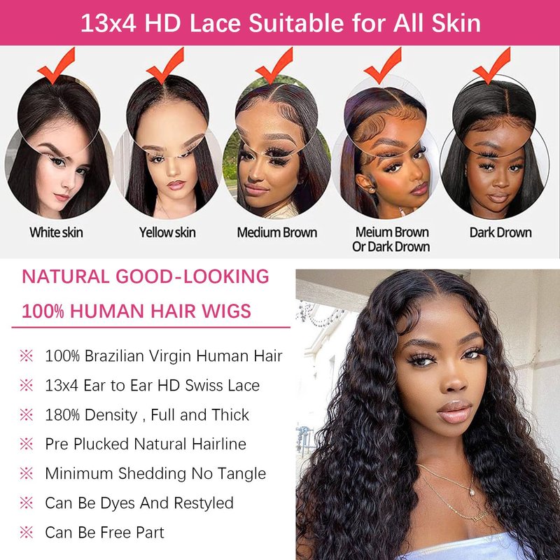- [ Freedom of Choice ]: 180% Density Deep Curly Lace Front Wigs Human Hair, Fuller and Glossy, 180% Density Deep Wave Lace Front Wigs Human Hair. No Tangle, No Shedding.