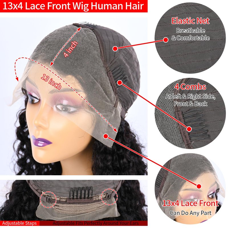 - [ Deep Wave Wig Cap Size ]: The Human Hair Lace Front Wigs are Medium Cap Size (21.5"-22.5" Inch) with 4 Combs and 2 Adjustable Straps Perfectly Combined with Your Head, Fit Most People.