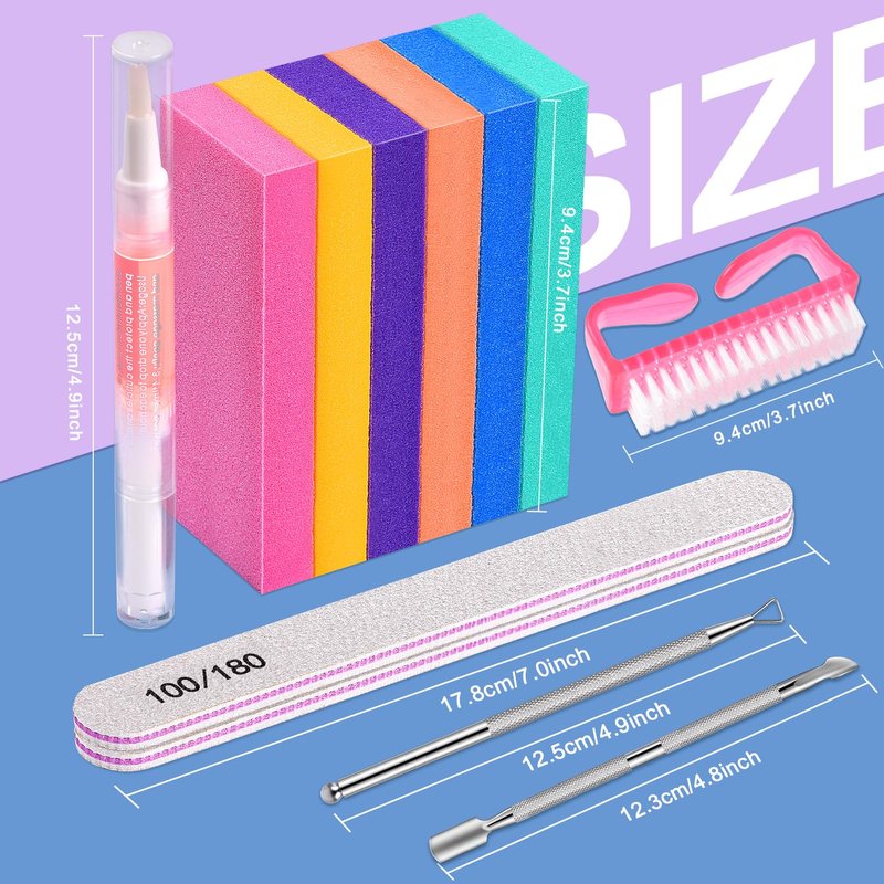 - IKOCO Nail Soaking Bowl Kit: Nail polish remover kit comes with 1pc hand soaking bowl, 1pc cuticle oil, 1pc triangle cuticle peeler, 1pc stainless steel cuticle pusher, 1pc nail brush, 2pcs 100/180 nail files and 6pcs buffer sanding blocks, 13pcs in total. The soaking bowl provides a more convenient nail removal procedure and the cuticle oil pen can moisturise and protect fingers. The manicure soaking bowl is suitable for most types of hands, you can enjoy a comfortable nail soaking experience.