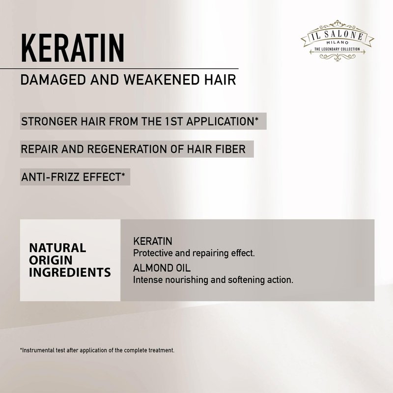 Il Salone Milano Professional Keratin Shampoo for Damaged Hair - Cleansing Shampoo + Dry Hair Treatment - Made with Almond Oil & Vitamin E - Salon-Quality Hair Care (500 ml)
