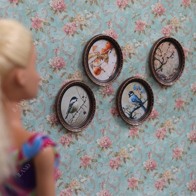 - ELABORATE MINIATURE DOLLHOUSE ACCESSORIES: You will receive four exquisite original dollhouse pictures, each beautifully presented in classical metal oval frames with four stickers, infusing your dollhouse with an air of artistic ambiance and aesthetic appeal.