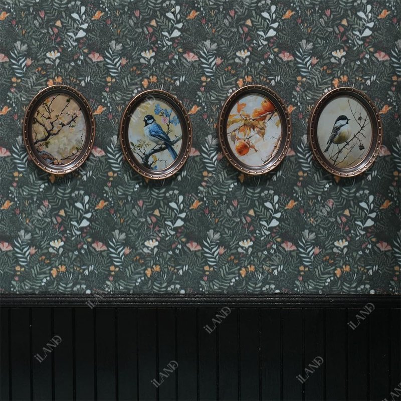 ARTISTIC DOLLHOUSE DECOR: What sets these doll house accessories apart are the four original and captivating still-life artworks: "Whisper In The Morning," "The Watch Of Autumn," "Ripe Persimmons," and "Plum Blossom." These paintings boast captivating details, decorated by exquisite metal oval frames that exude a delicate realistic, and artistic atmosphere under the macro lens.