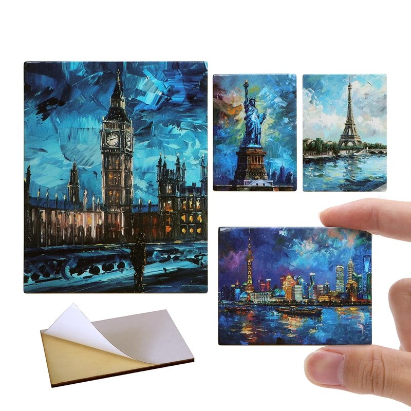 Artistic Dollhouse Accessories: This remarkable set includes four stunning prints featuring iconic world landmarks. Each piece comes with a wooden board with adhesive backing, easy to elevate your dollhouse decor with a touch of elegance and sophistication that pays homage to the beauty of architecture.
