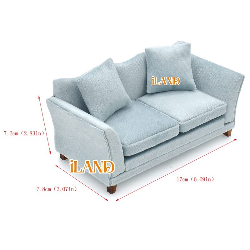- --EXCELLENT CRAFTSMANSHIP: The doll house sofa is designed in modern style with excellent craftsmanship. You will be impressed with the charmful luster of the velvet, and the elegant wavy profile of the sofa. The movable 2 square cushions and 2 soft pillows are sewed by the fine stitch with the peaceful timeless color.