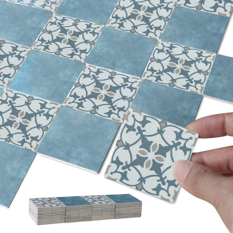 - Style: 60pcs Rococo Floral & Blue Marbling Tiles
