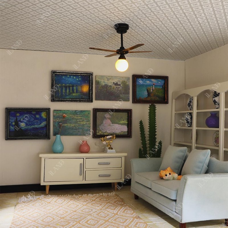 Artistic DIY Delight: The 6 pictures are packed separately, allowing for creative arrangement in the frames or on boards. The dollhouse pictures come from famous impressionist paintings in art history, which make the dollhouse living room and study look artistic, realistic, and attractive. It is recommended to pair them with the beautifully patterned dollhouse wallpaper, dollhouse accessories, and furniture from the ILAND store. By the way, Blue Tack makes it easy to paste frames repeatedly on the dollhouse wall.
