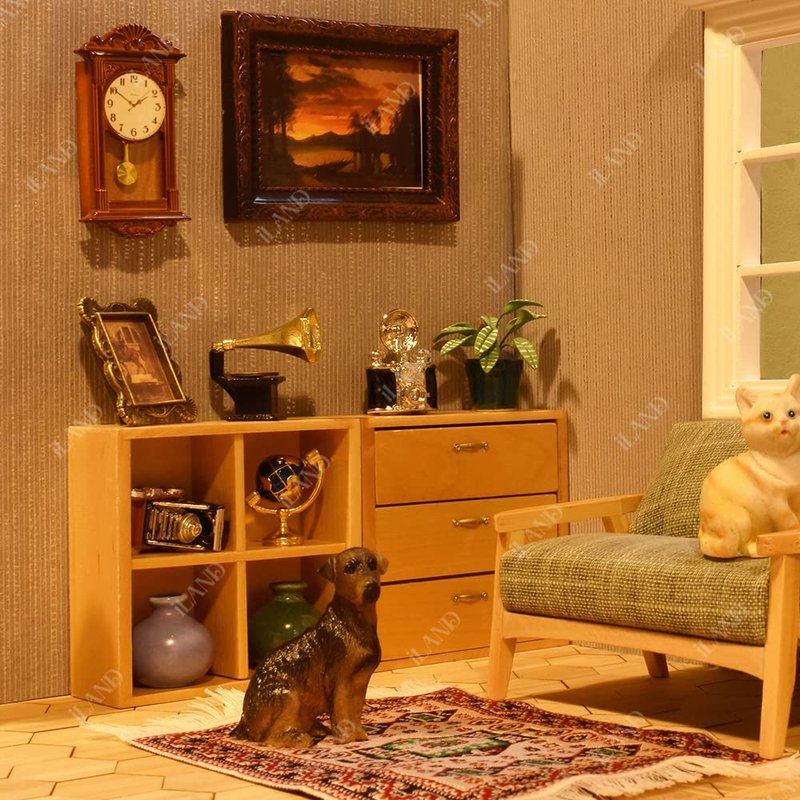 Handcrafted with a luxurious antique appearance, this grandfather clock will bring you back to the peaceful old days. The golden cute record player seems to play the romance music. Both of them will make a unique and impressive dollhouse life scene in the vintage style. As a gift, it can also make the recipient feel your heart. - - ABOUT iLAND: